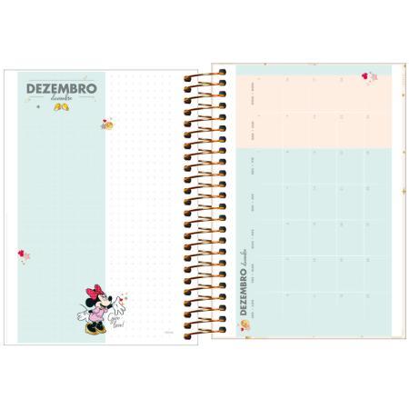 A Agenda Espiral Diária Minnie tem visão de 1 dia por página, exceto sábado e domingo. Possui capa dura, parte interna da capa decorada, folha dupla de adesivos e bolsa de papel para guardar trabalhos e anotações. Ideal para a organização do dia a dia.