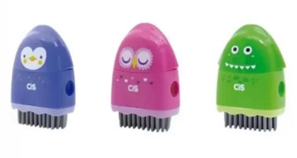 O Apontador 3 Em 1 CiS Borracha + Vassourinha é um novo conceito que reúne apontador e borracha em um único produto.