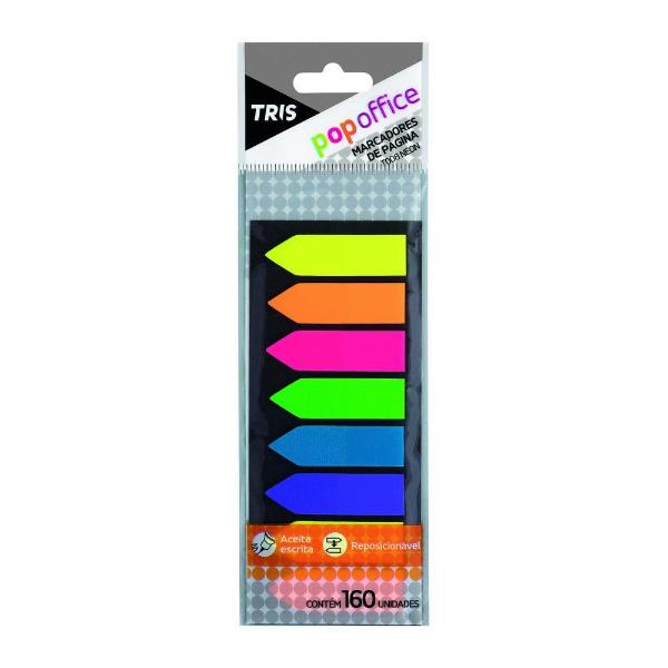 . 160 folhas 43x13mm 8 blocos com 20 folhas em 6 cores neon (amarelo, laranja, rosa, verde, azul e roxo). Formato de seta. Adesivo reposicionável. Aceita escrita.