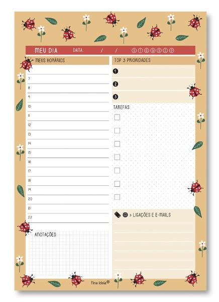 Anote suas tarefas para o seu dia ficar mais organizado. Bloco com 80 folhas, papel offset 75g, formato 14,5x21cm.