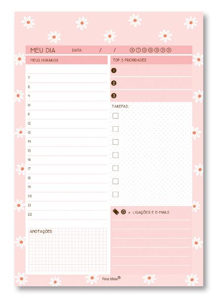 Anote suas tarefas para o seu dia ficar mais organizado. Bloco com 80 folhas, papel offset 75g, formato 14,5x21cm.