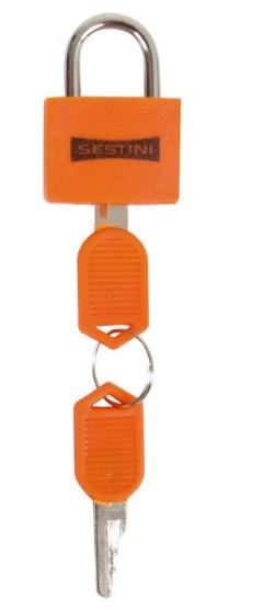 Este cadeado á apropriado para zíperes de malas, pastas e sacolas de viagem.