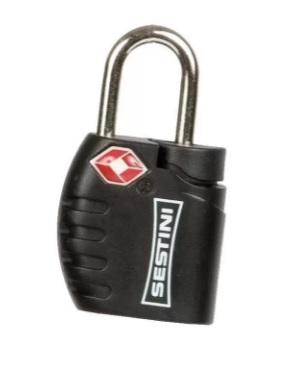 Cadeado TSA com chave, recomendado para que a mala possa ser revistada sem violação do cadeado.