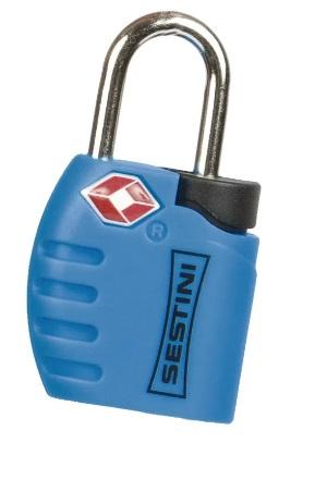 Cadeado TSA com chave, recomendado para que a mala possa ser revistada sem violação do cadeado. Apropriado para zíperes de malas, pastas e sacolas de viagem.