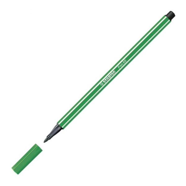 Caneta Stabilo Pen 68, com ponta sintetica, proporcionando maior duracao do produto.