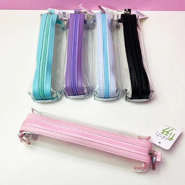 Estojo Fizz tubinho com detalhe colorido no zíper e corpo transparente. Fica lindo cheio de canetas e itens de papelaria, a transparência deixa bem charmoso.