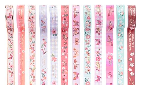 ? Fita decorativa reposicionável, com designs únicos, para decorar cadernos, livros, vidros, madeira, plástico, álbuns, etc.