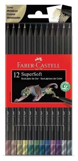 LÁPIS DE COR FABER CASTELL SUPER SOFT 12 CORES METÁLICAS