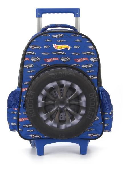 A mochila com rodinhas Luxcel Hot Wheels tem design espaçoso, com dois bolsos laterais e bolso frontal, ideais para manter o material escolar bem organizado no dia a dia.